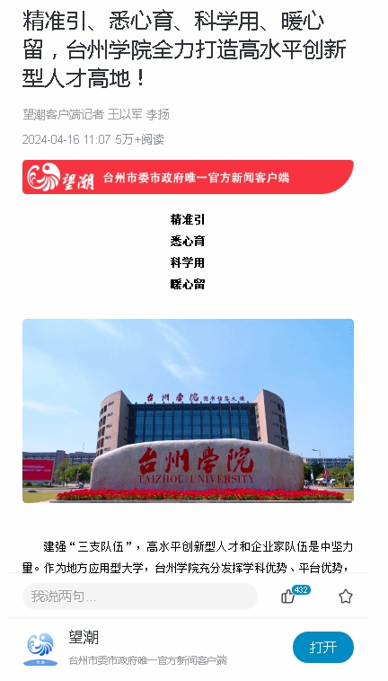 精准引、悉心育、科学用、暖心留,台州学院打出人才引育“组合拳”。