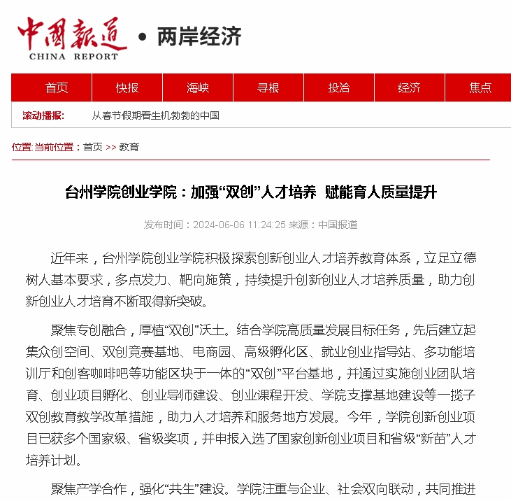 近年来,台州学院创业学院积极探索创新创业人才培养教育体系,立足立德树人基本要求,多点发力、靶向施策,持续提升创新创业人才培养质量,助力创新创业人才培育不断取得新突破。