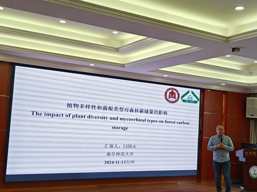 闫国永副教授作了题为《植物多样性和菌根类型对森林碳储量的影响》学术报告。报告中,系统地探讨了植物多样性与不同菌根类型对森林碳储量的影响及其作用机制,分析了植物多样性对森林生产力的促进作用,评估了不同菌根类型在碳固定和储存过程中的功能,并揭示了两者之间的相互作用对森林生态系统碳储量的综合影响。会后,双方就相关学术问题进行了深入的探讨与交流。
