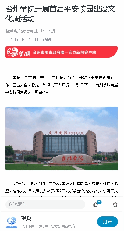 当前,台州学院正在深入推进5A级平安校园建设,以平安校园建设文化周为契机,进一步强化校园安全管理,完善安全制度,提升应急处置能力。同时,积极探索校园安全工作的新思路、新方法,不断提高校园安全工作的科学性和有效性。